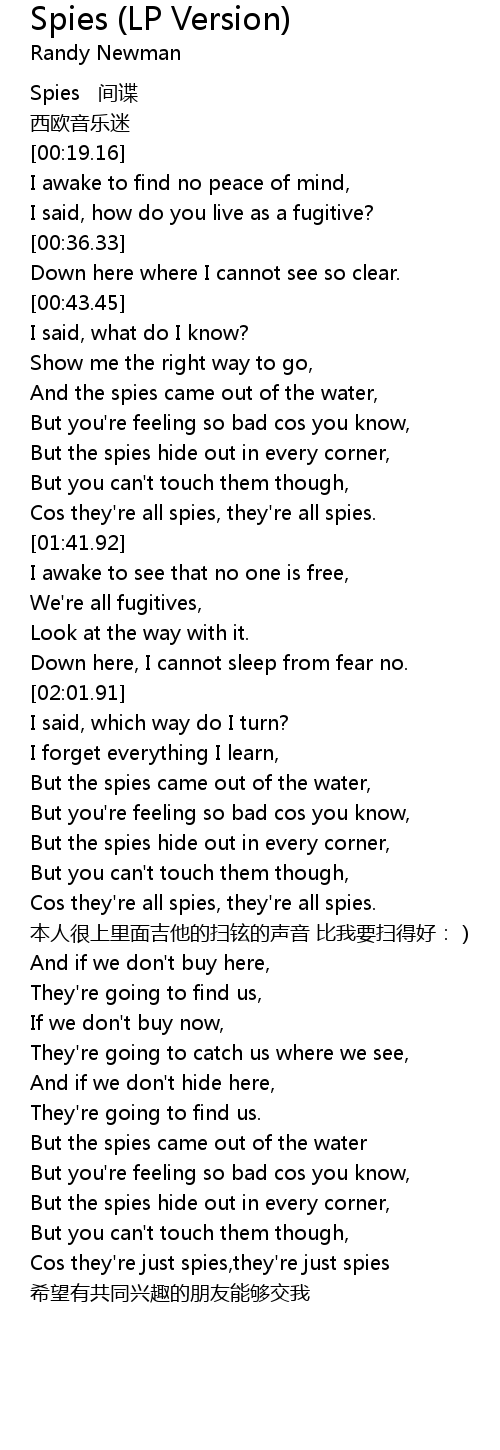 | [04:17.09] | Cos they're just spies,they're just spies |