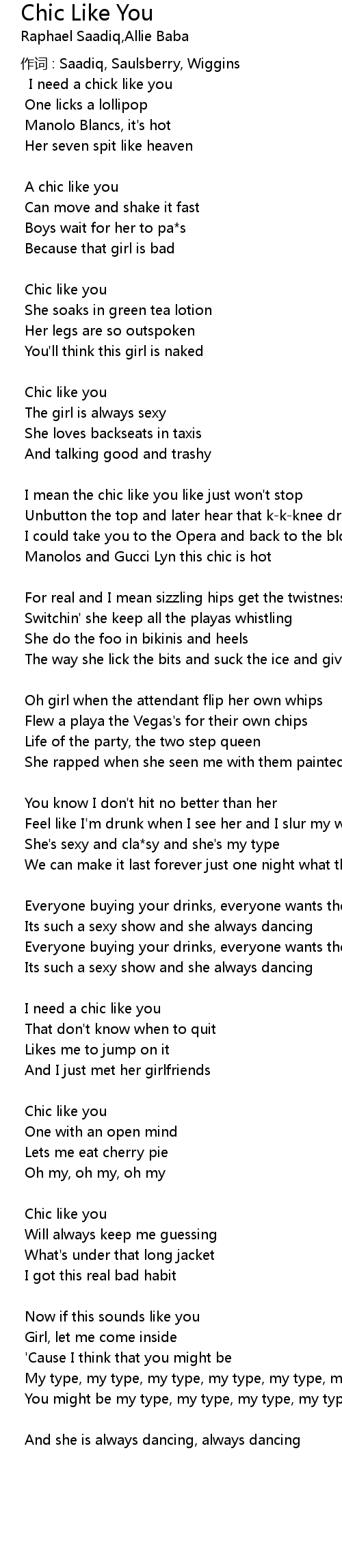 | 歌曲 | Chic Like You |