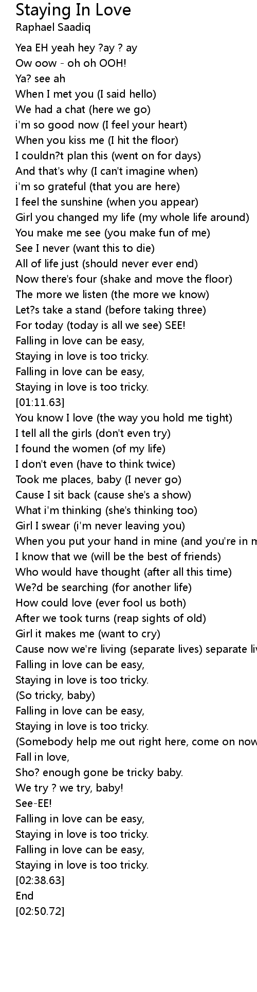 Staying in love is too tricky. |