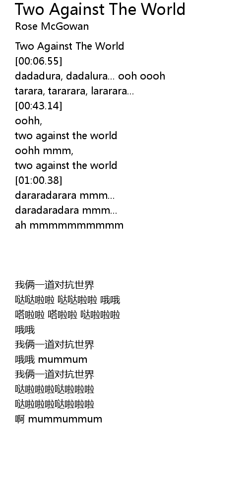| [00:02.58] | Two Against The World |