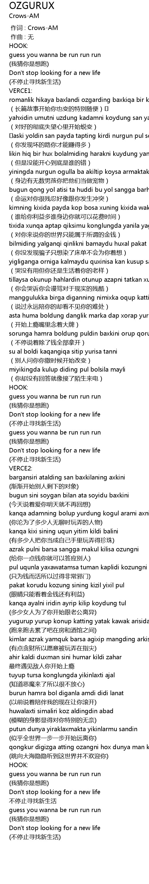 | [00:00.000] | 作词 : Crows-AM |