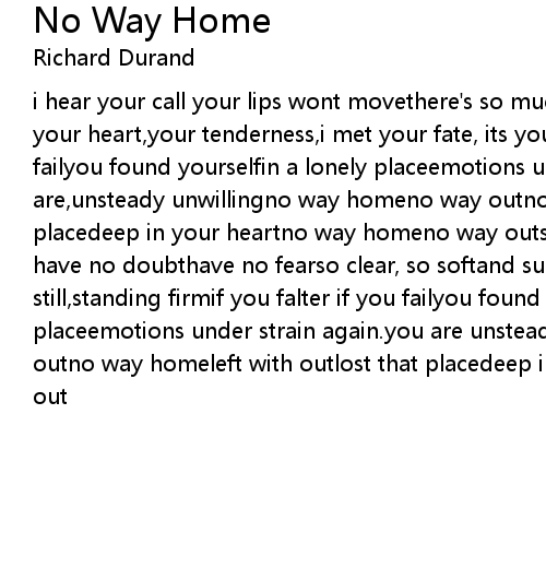 i hear your call your lips wont movethere's so much hurt so much pasti touch your heart,your tenderness,i met your fate, its your spellif you falter, if you failyou found yourselfin a lonely placeemotions under strain againyou are,unsteady unwillingno way homeno way outno way homeleft withoutlost that placedeep in your heartno way homeno way outslow to learn,you give your heartyou have no doubthave no fearso clear, so softand such a messwe're standing still,standing firmif you falter if you failyou found yourself in a lonely placeemotions under strain again.you are unsteady, unwillingno way homeno way outno way homeleft with outlost that placedeep in your heartno way homeno way out