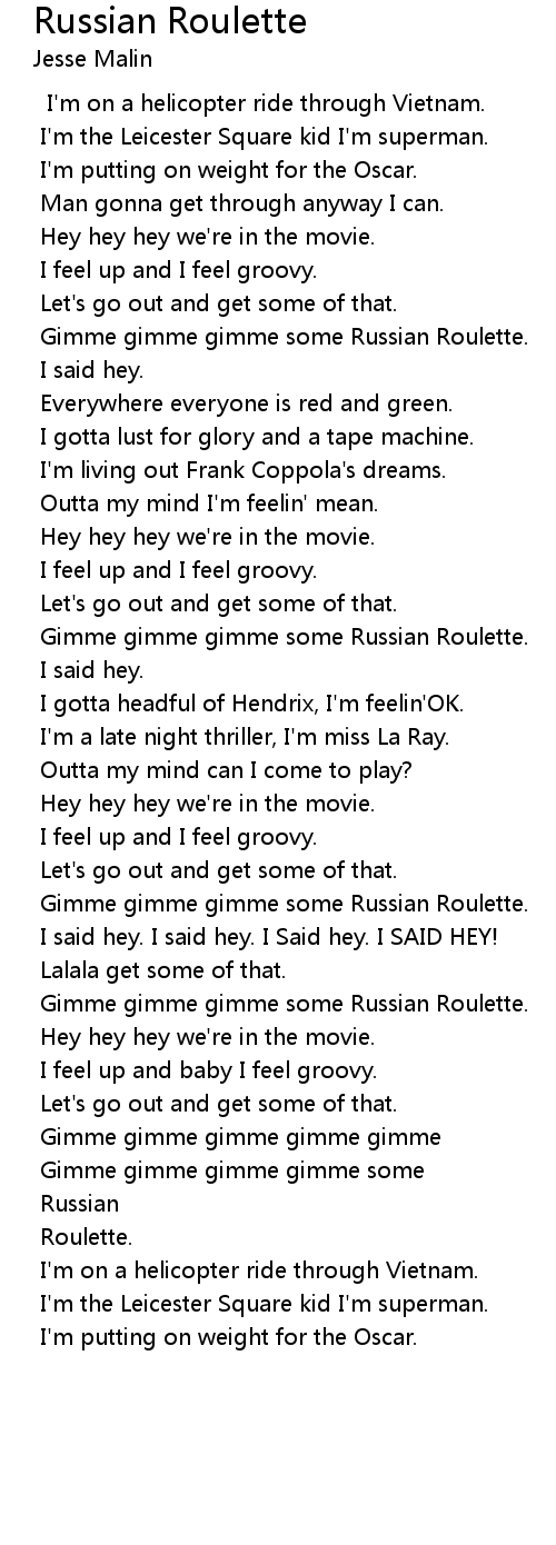 Gimme gimme gimme some Russian Roulette. |