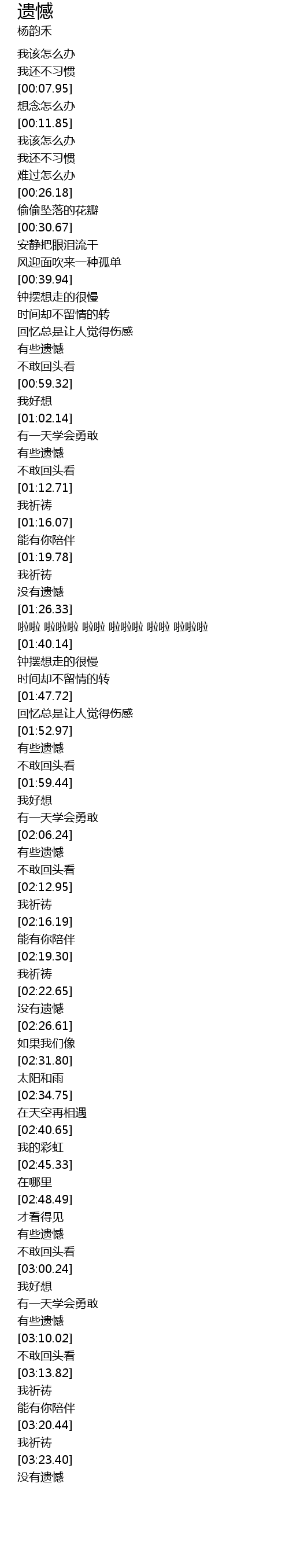 | [03:23.96] | 没有遗憾 |