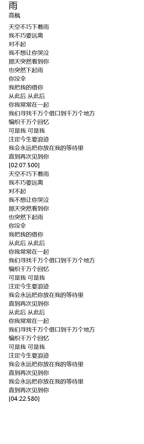 | [00:22.850] | 天空不巧下着雨 |