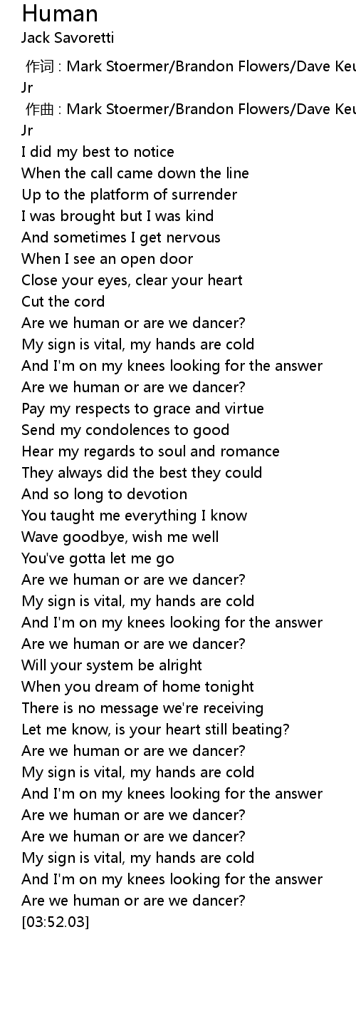 | [00:01.000] | 作曲 : Mark Stoermer/Brandon Flowers/Dave Keuning/Ronnie Vannucci, Jr |