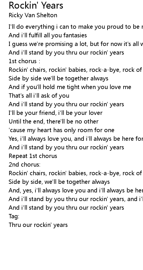 | And i'll stand by you thru our rockin' years | |