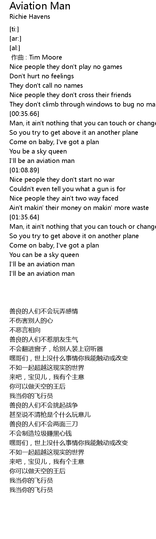 | [02:13.48] | I'll be an aviation man |
