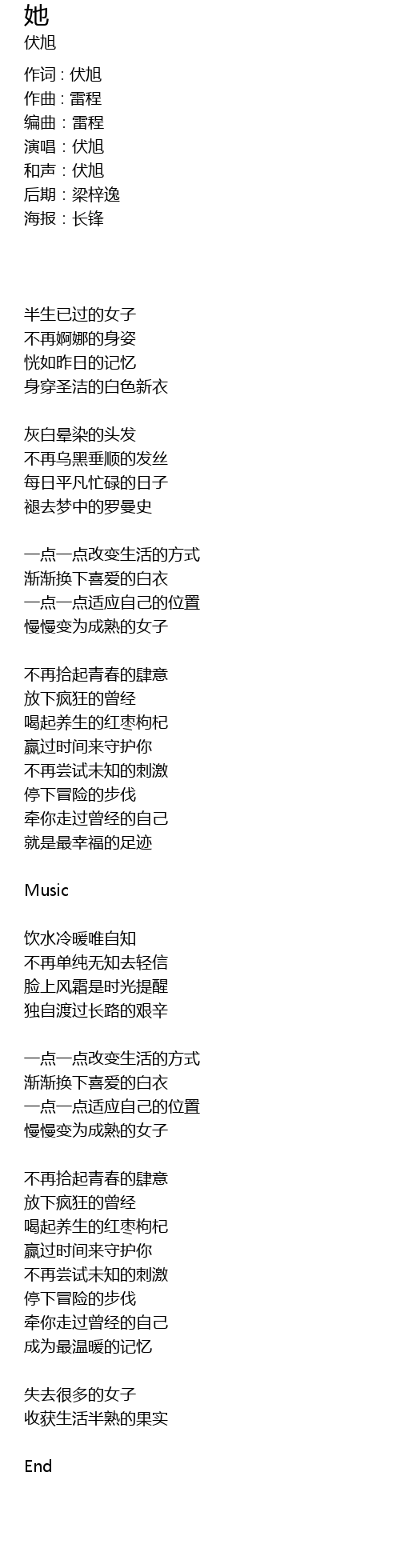 | 作词 : 伏旭 | |