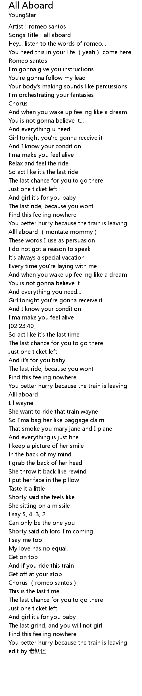 | [02:49.63] | Alll aboard |
