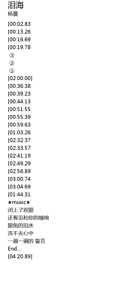 | [01:48.27][00:02.83] | 《泪 海》-杨蔓 |