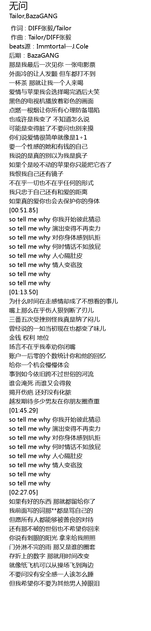 | [01:53.82] | so tell me why 何时情话不如放屁 |
