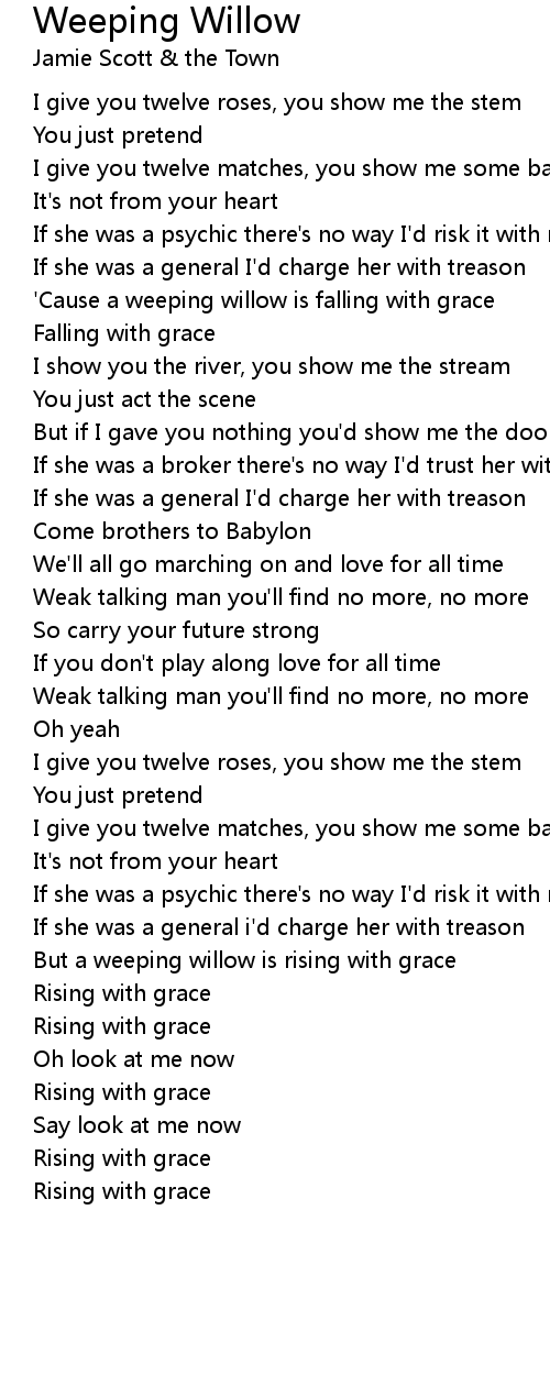 'Cause a weeping willow is falling with grace |