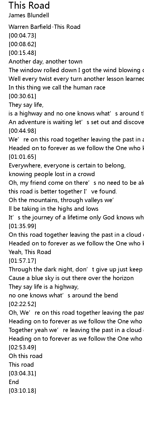 | [01:18.42] | this road is better together I' ve found. |