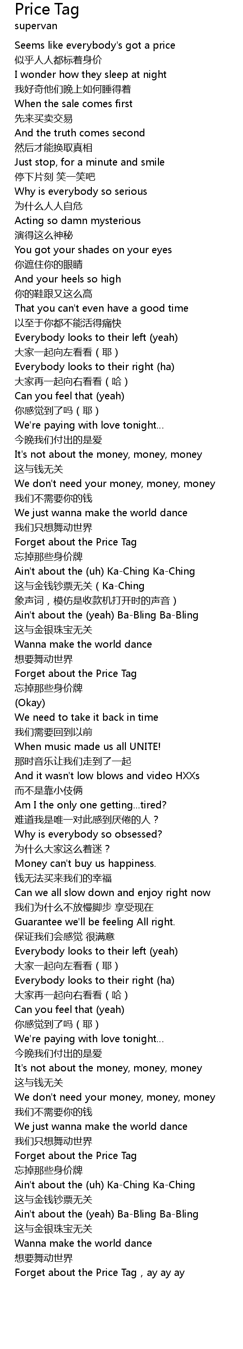 | [02:10.331] | Forget about the Price Tag, ay ay ay |