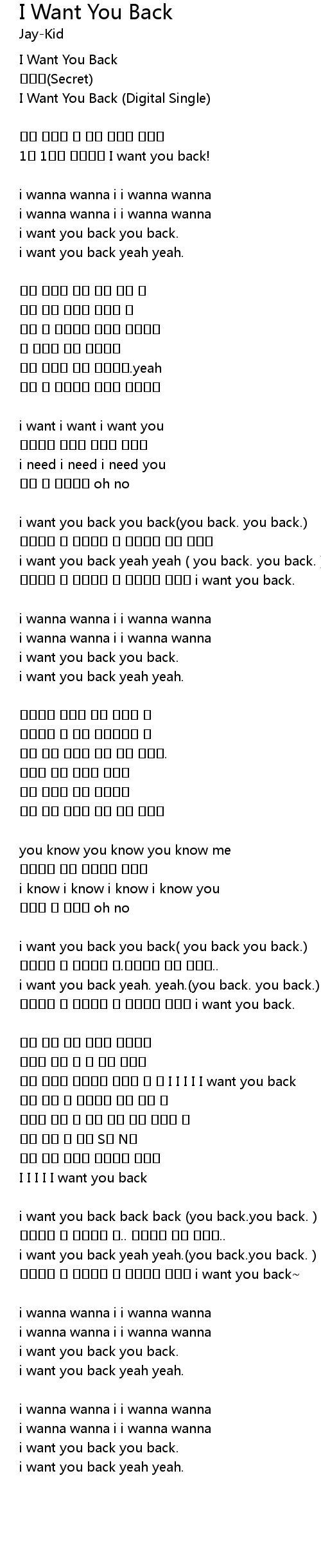 | 너의 거짓말 새까맣게 타버린 내 맘 I I I I I want you back | |