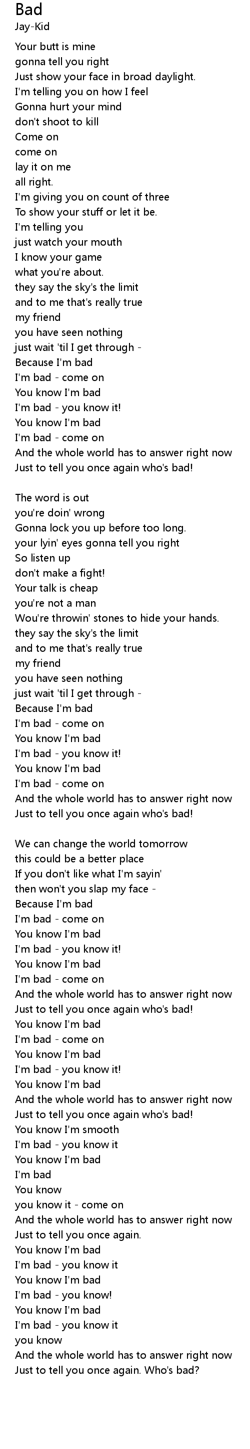 I'm bad - you know it |