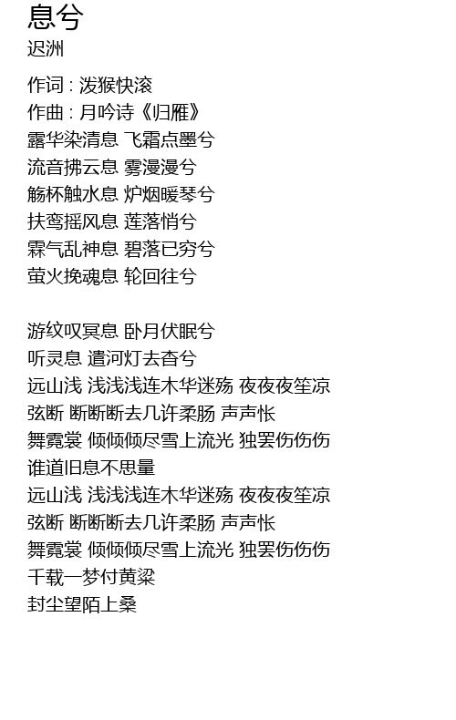 | [00:34] | 扶鸾摇风息 莲落悄兮 |