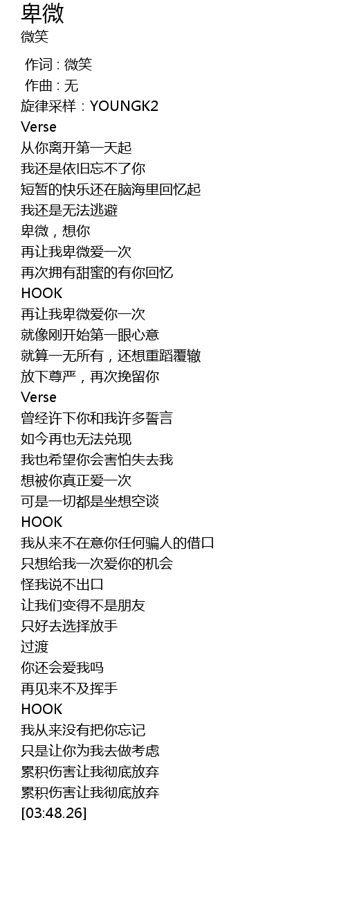| [03:28.17] | 累积伤害让我彻底放弃 |