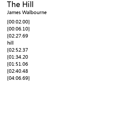 | [03:23.16][02:27.69][02:20.47][01:01.20][00:07.40] | I will life up my eyes to the hill |