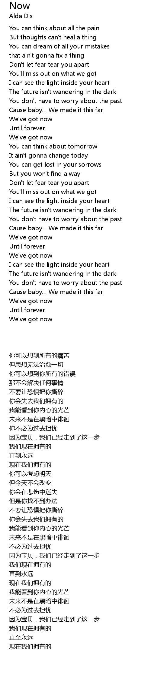 | [00:38.490] | The future isn' t wandering in the dark |