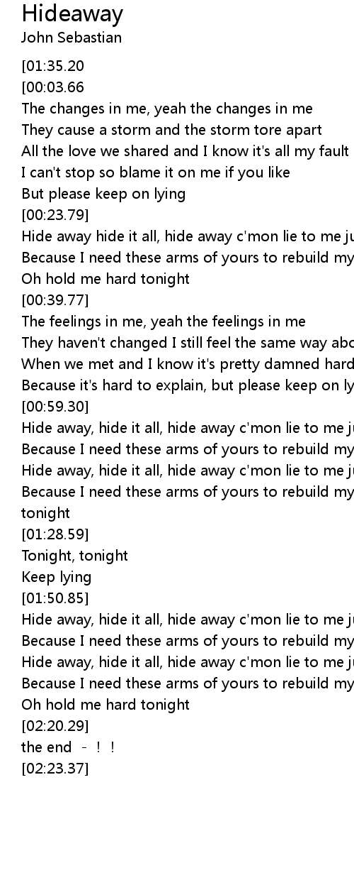 | [01:51.10] | Hide away, hide it all, hide away c' mon lie to me just on more time |