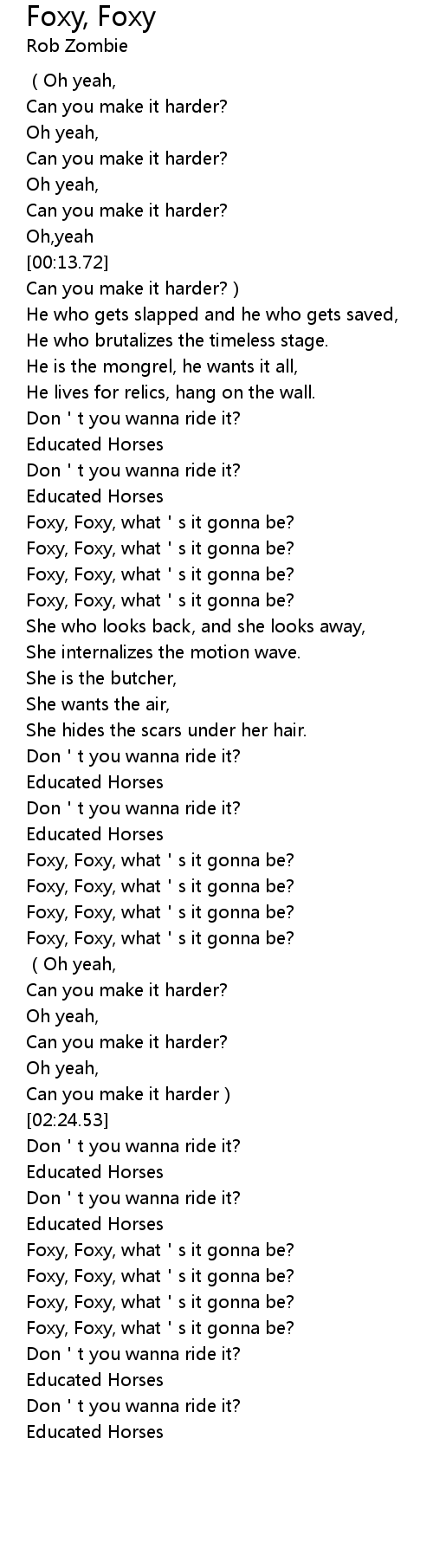 | [02:00.16] | Foxy, Foxy, what's it gonna be? |