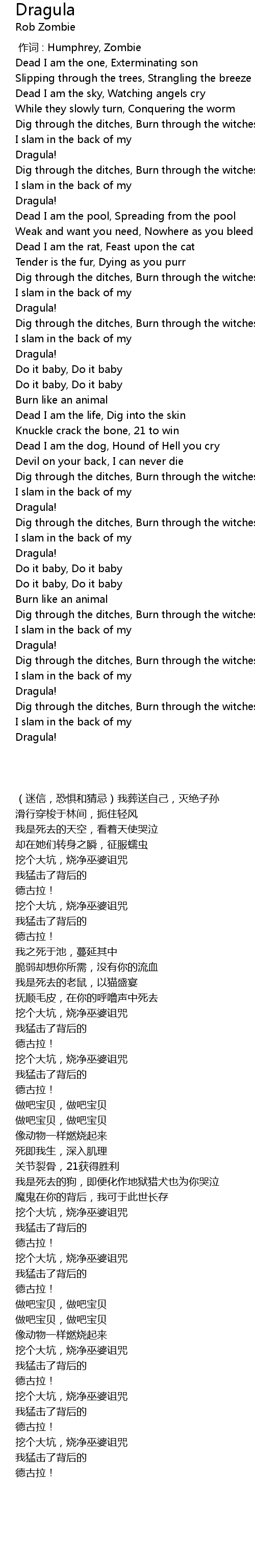 | [02:49.0] | Dig through the ditches, Burn through the witches |