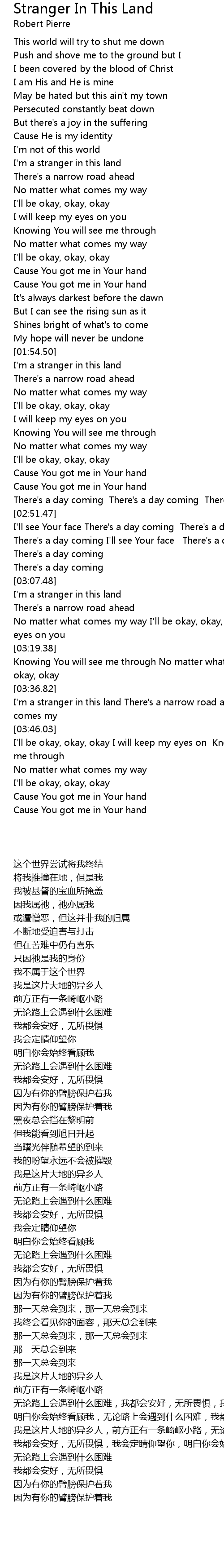 I'm a stranger in this land There's a narrow road ahead No matter what comes my |