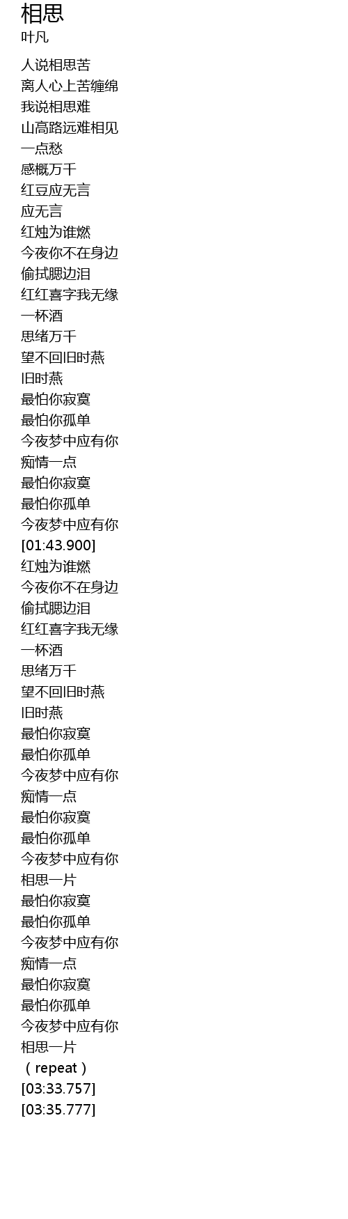 | [00:50.140] | 红豆应无言 |
