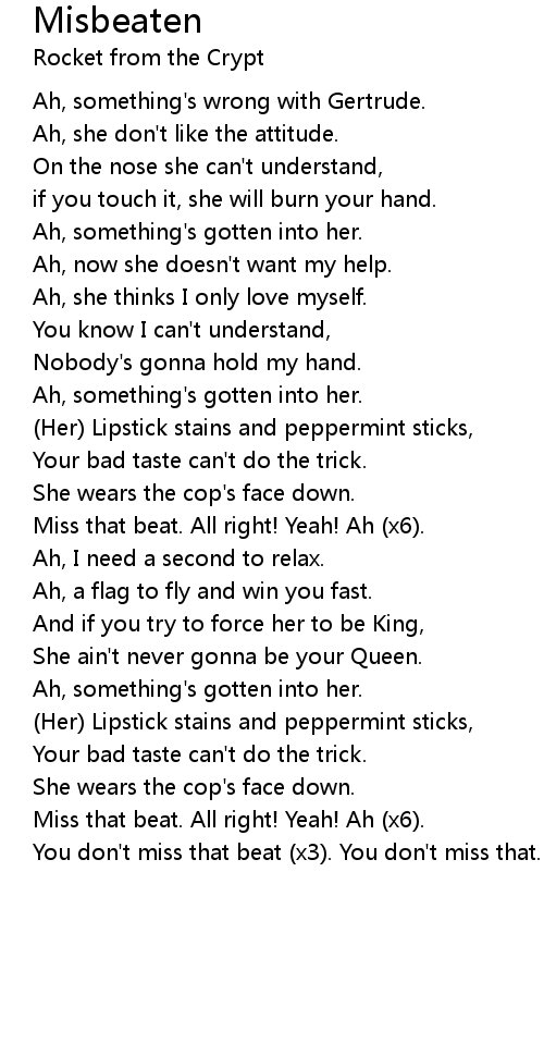 Miss that beat. All right! Yeah! Ah (x6). |