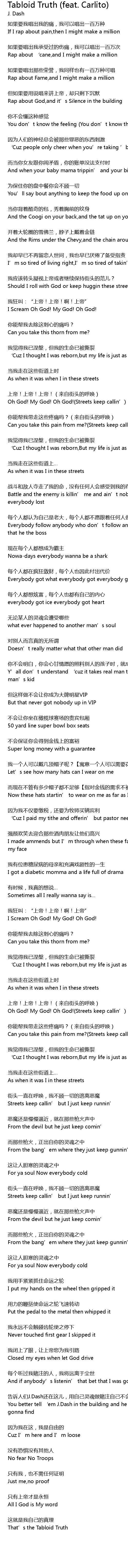 | 歌曲 | Tabloid Truth (feat. Carlito) |