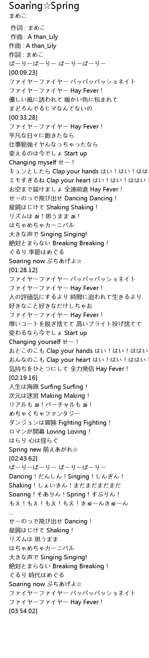 | [03:00.75] | Soaring!そありん!Spring!すぷりん! |