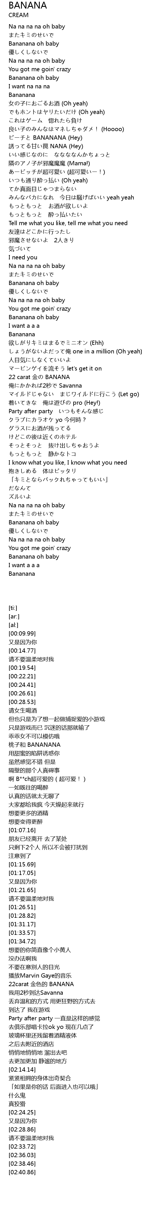 | [02:28.86] | Bananana oh baby |