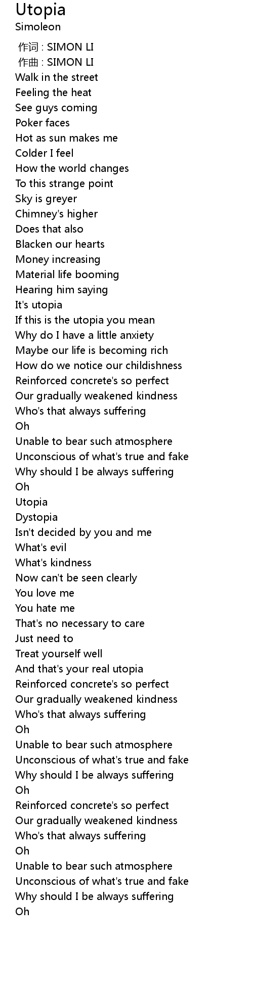 | [00:01.000] | zuò qǔ : SIMON LI |