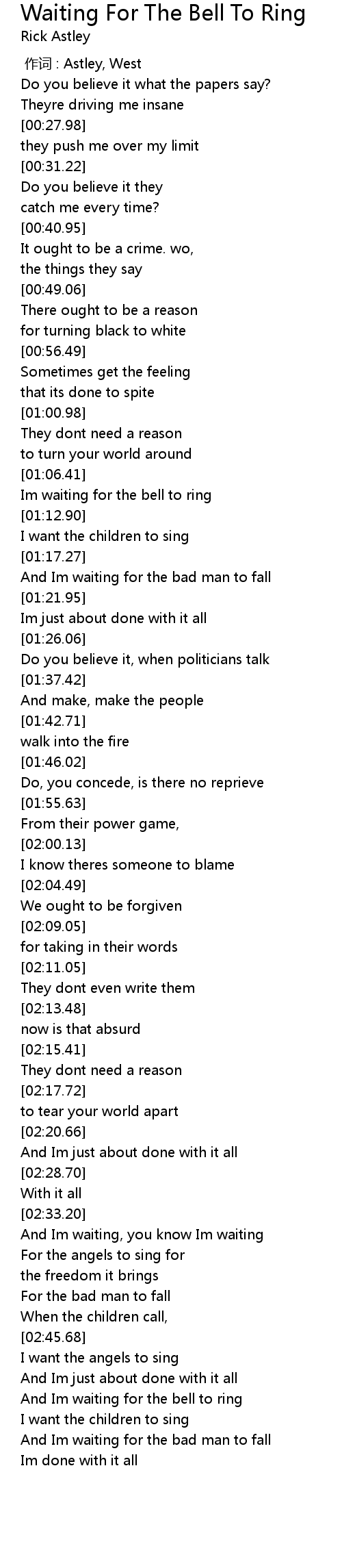 | [03:45.84] | And Im waiting for the bell to ring |