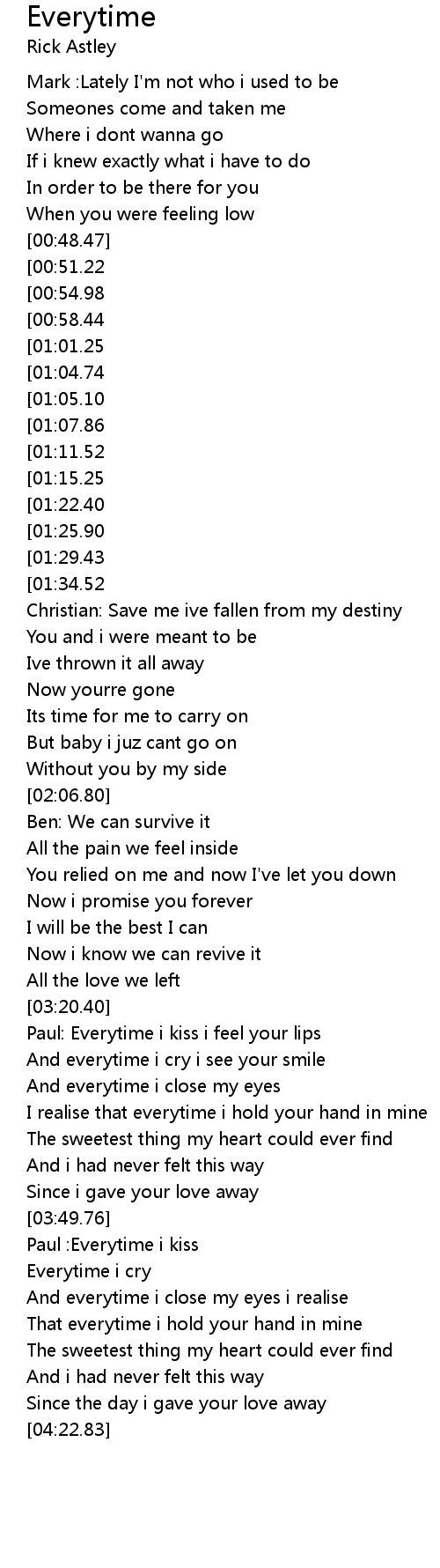 [03:21.47] Paul: Everytime i kiss i feel your lips