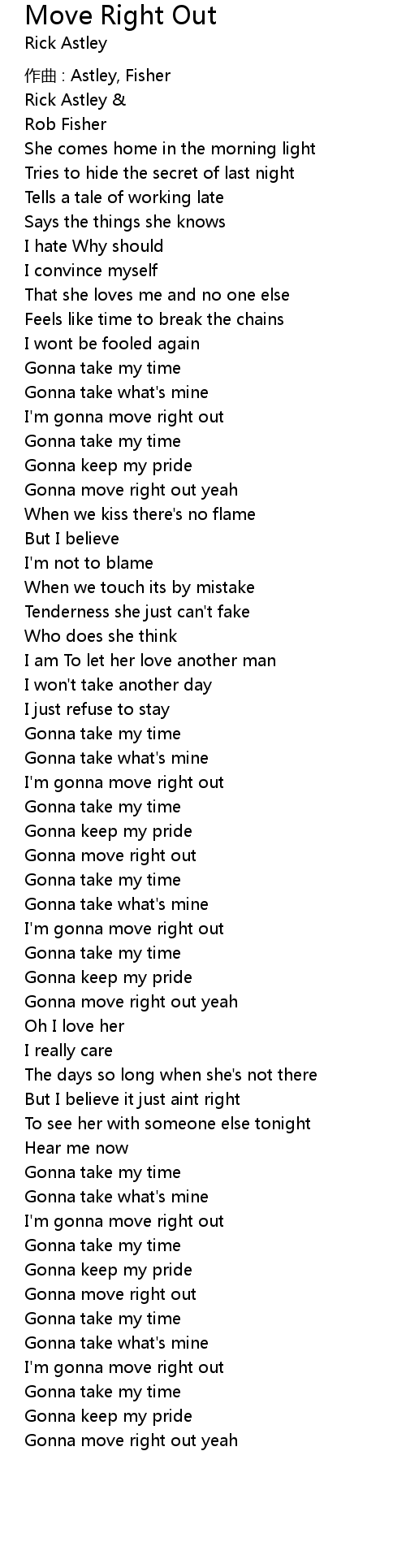 | 歌曲 | Move Right Out |