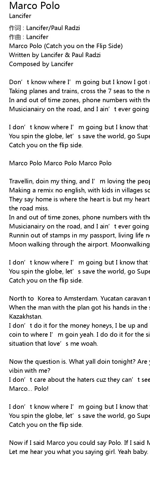 | Now if I said Marco you could say Polo. If I said Marco would you say Polo. | |
