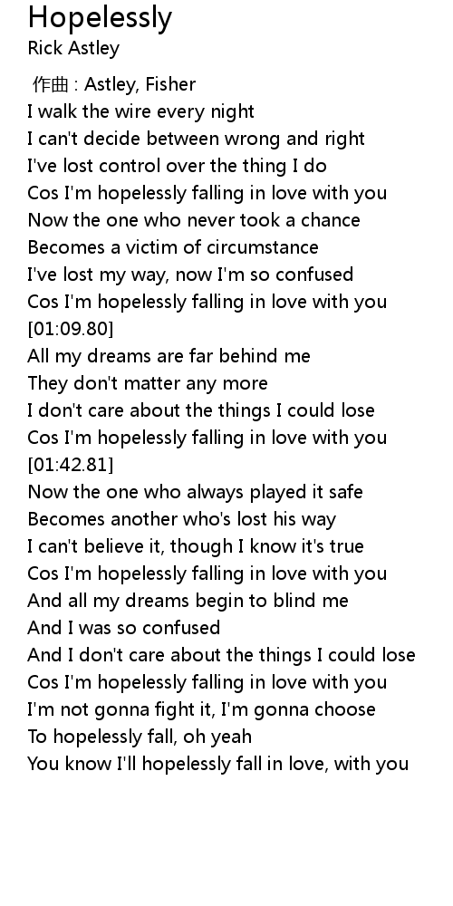 | [01:29.80] | Cos I'm hopelessly falling in love with you |