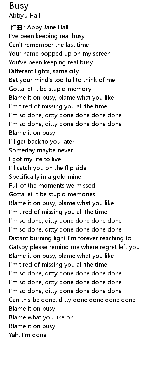 | [01:00.580] | Blame it on busy |
