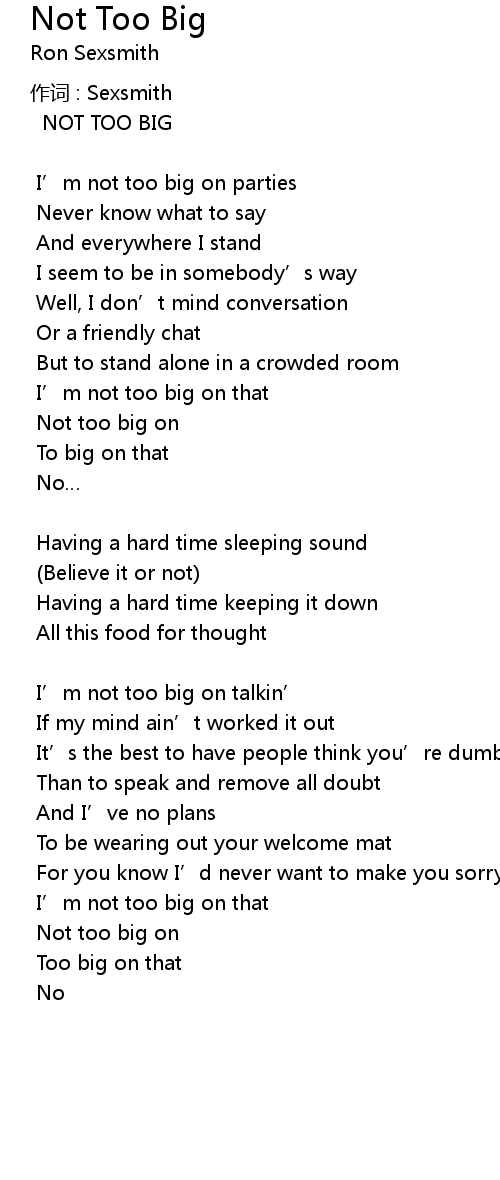 | 歌曲 | Not Too Big |