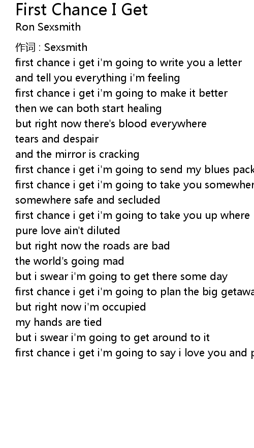 | 歌曲 | First Chance I Get |