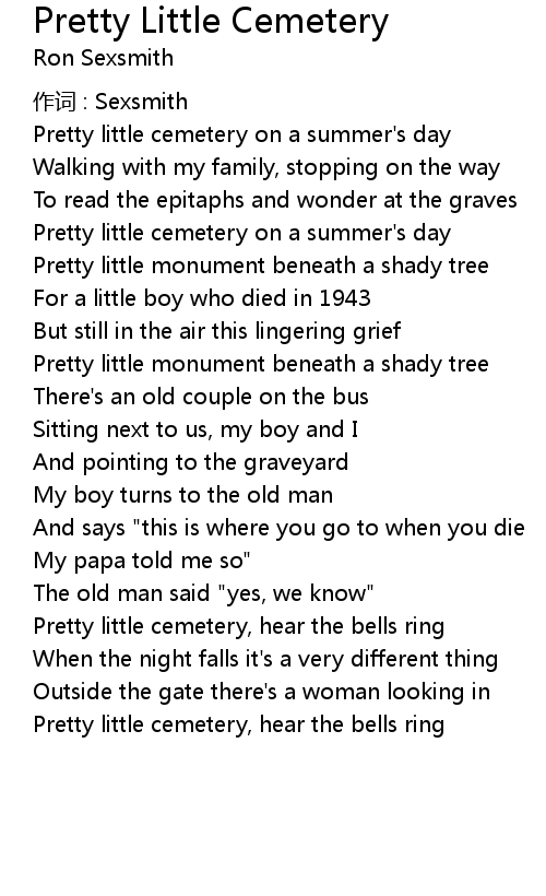 | Pretty little cemetery, hear the bells ring | |