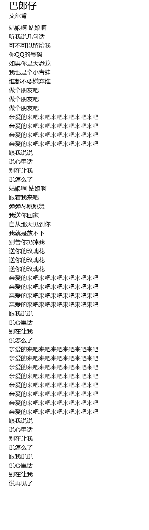 | [03:03.350] | qīn ài de lái ba lái ba lái ba lái ba lái ba lái ba |