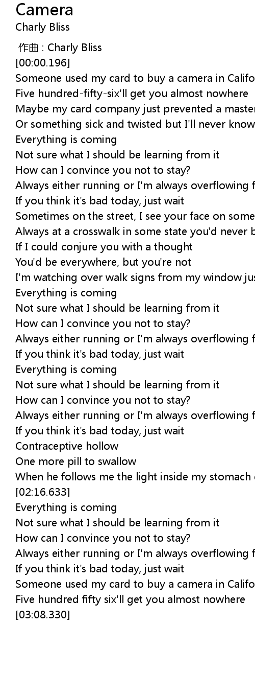 | [00:00.000] | zuò qǔ : Charly Bliss |