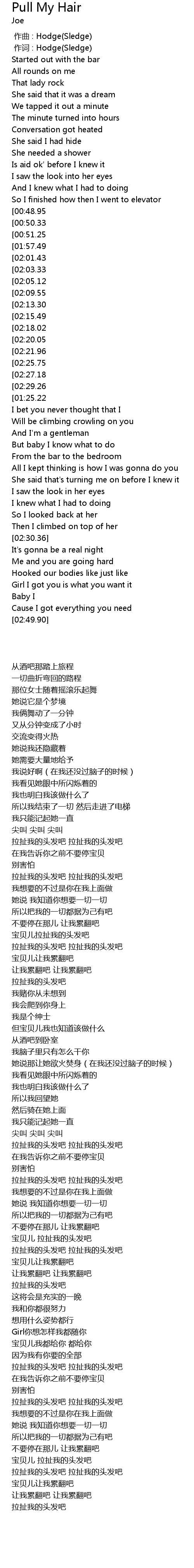 | [02:50.18][01:57.49][00:52.38] | Pull my hair pull my hair |