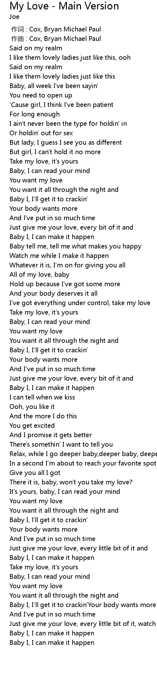 | 歌曲 | My Love - Main Version |