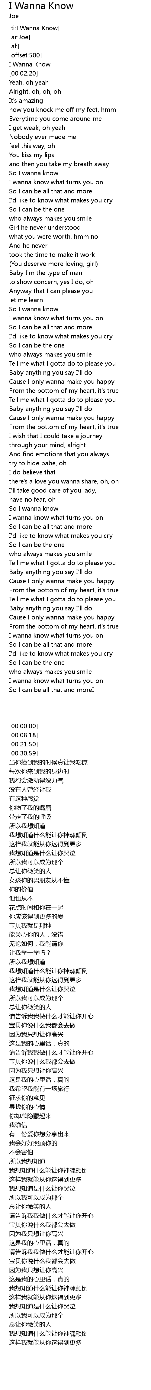 [ti:I Wanna Know] |