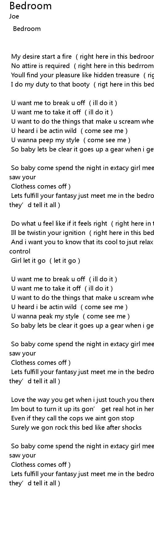 | Do what u feel like if it feels right right here in this bedroom oh! | |